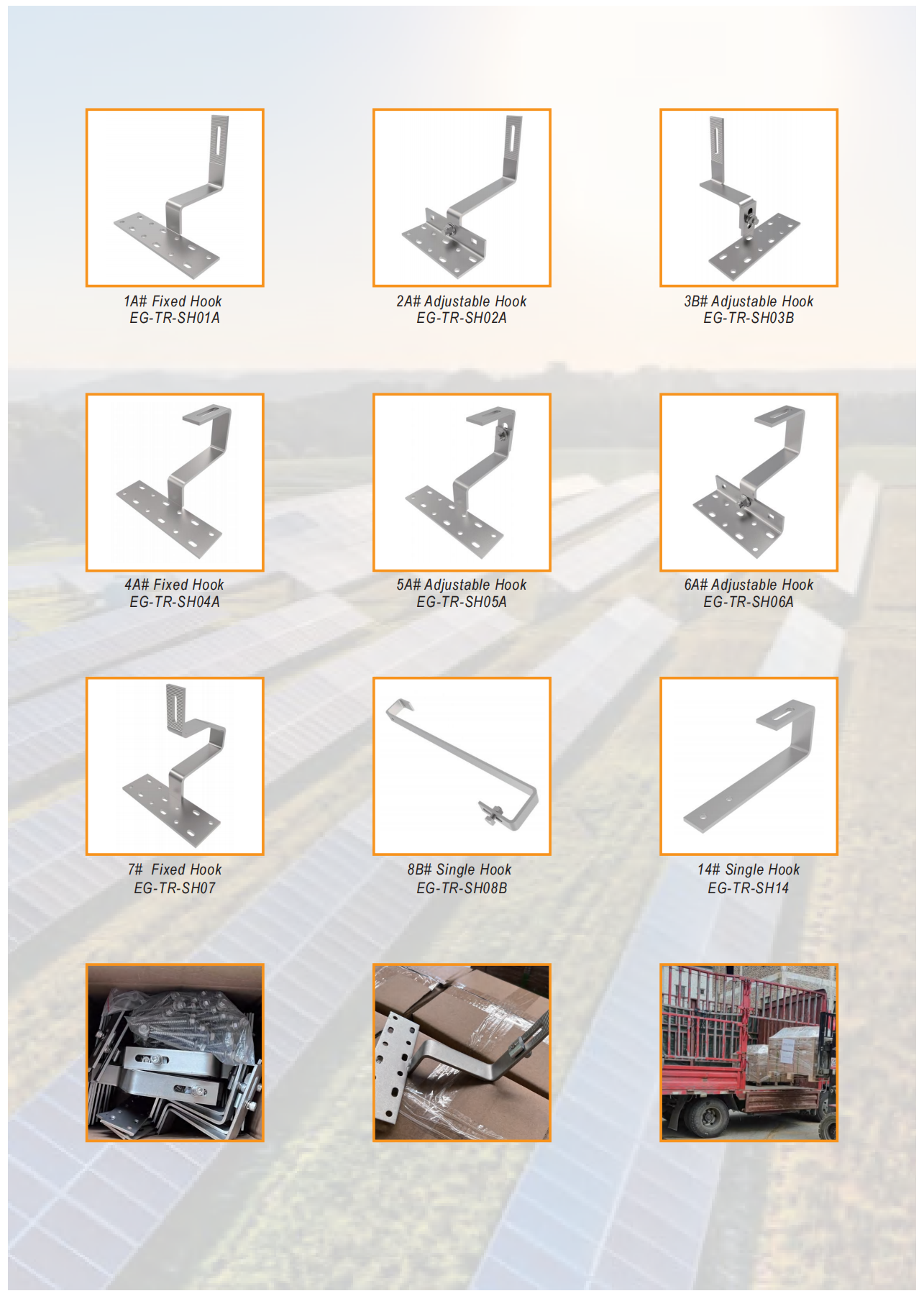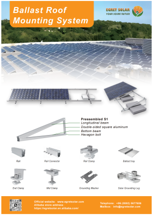 O Egret Solar trouxe muitas amostras para a exposição. Os principais produtos promovidos são diferentes de acordo com diferentes ambientes. Existem sistemas de suporte trilhos curtos, sistemas de suporte para pés e sistemas de pés dianteiros e traseiros ajustáveis que podem ser usados em telhados de metal; Sistema de montagem em aço carbono e sistema de montagem de garagem de alumínio para garagem solar; Sistema de montagem no solo com sistema de montagem de coluna única e terra com coluna dupla para uso do solo; O suporte de montagem do telhado de telha é geralmente usado para telhados de ladrilhos, e o gancho e o trilho podem ser selecionados de acordo com a situação real; O sistema de montagem do telhado de lastro e o sistema de tripé são mais comumente usados para telhados planos. Diga -nos o cenário de instalação, velocidade do vento, carga de neve, orçamento, etc., e adaptaremos o design para você. Você pode confiar em nós com todo o seu coração.